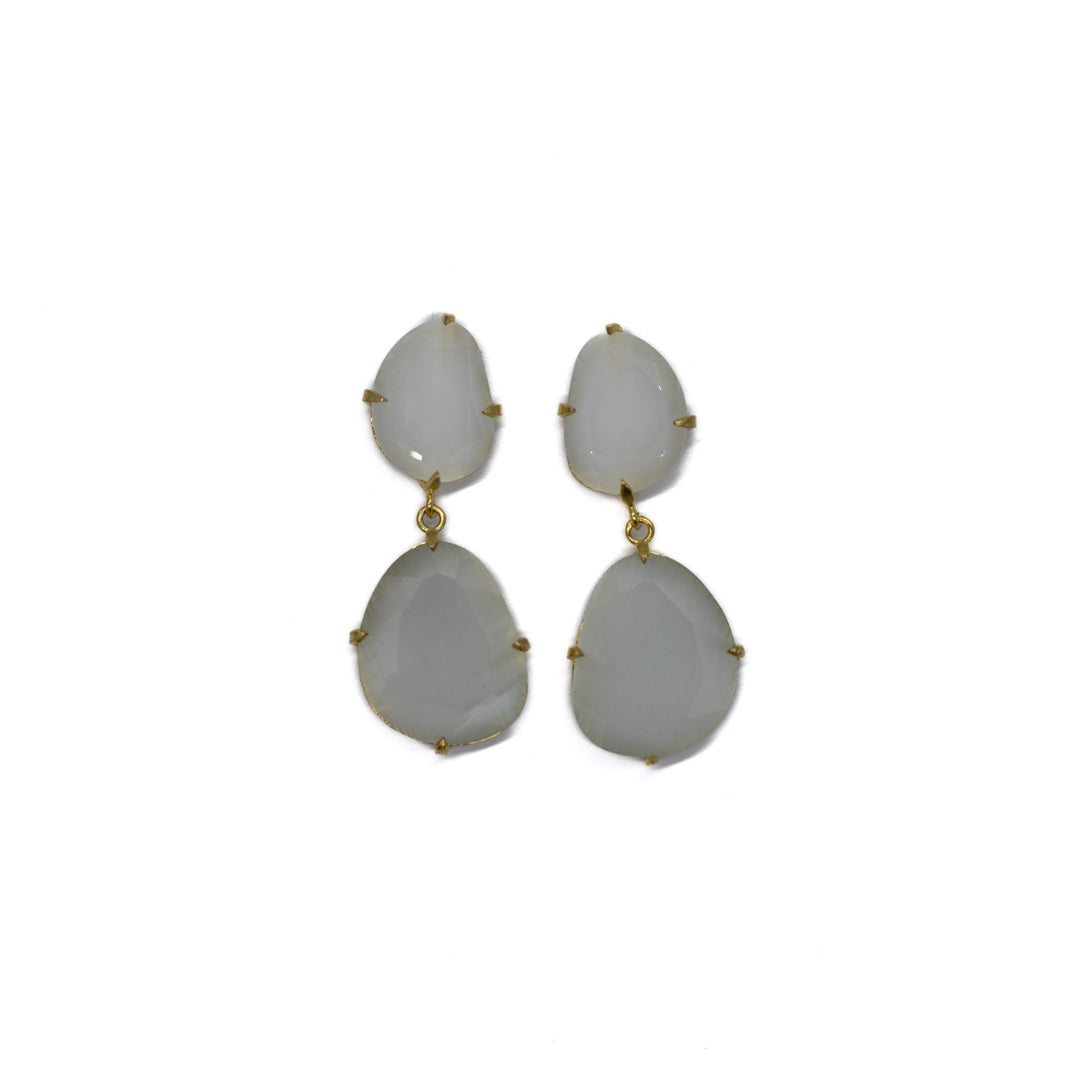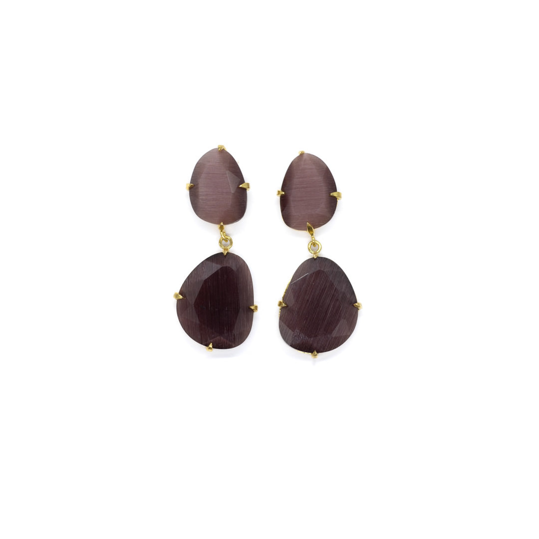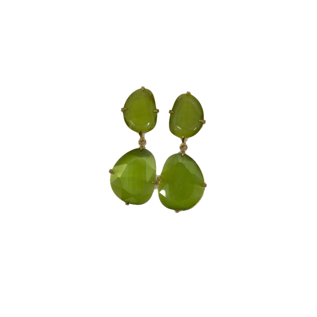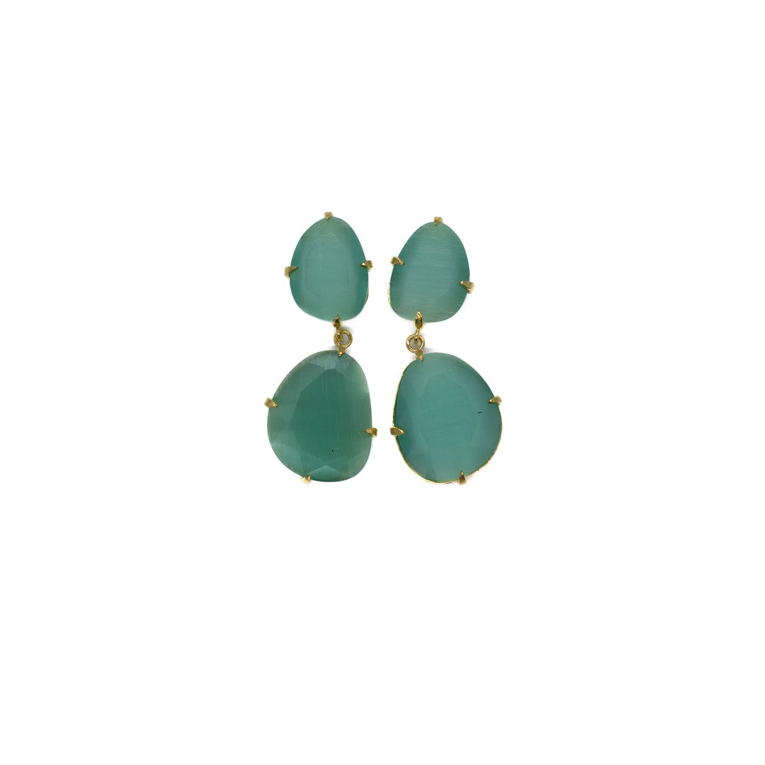 Tamaño 4,8 pendiente doble con tilla, bañado en oro 18k, 3 micras cristal tratado sintéticamente para lograr los colores, el cristal va encajado a golpe de martillo de forma artesanal.