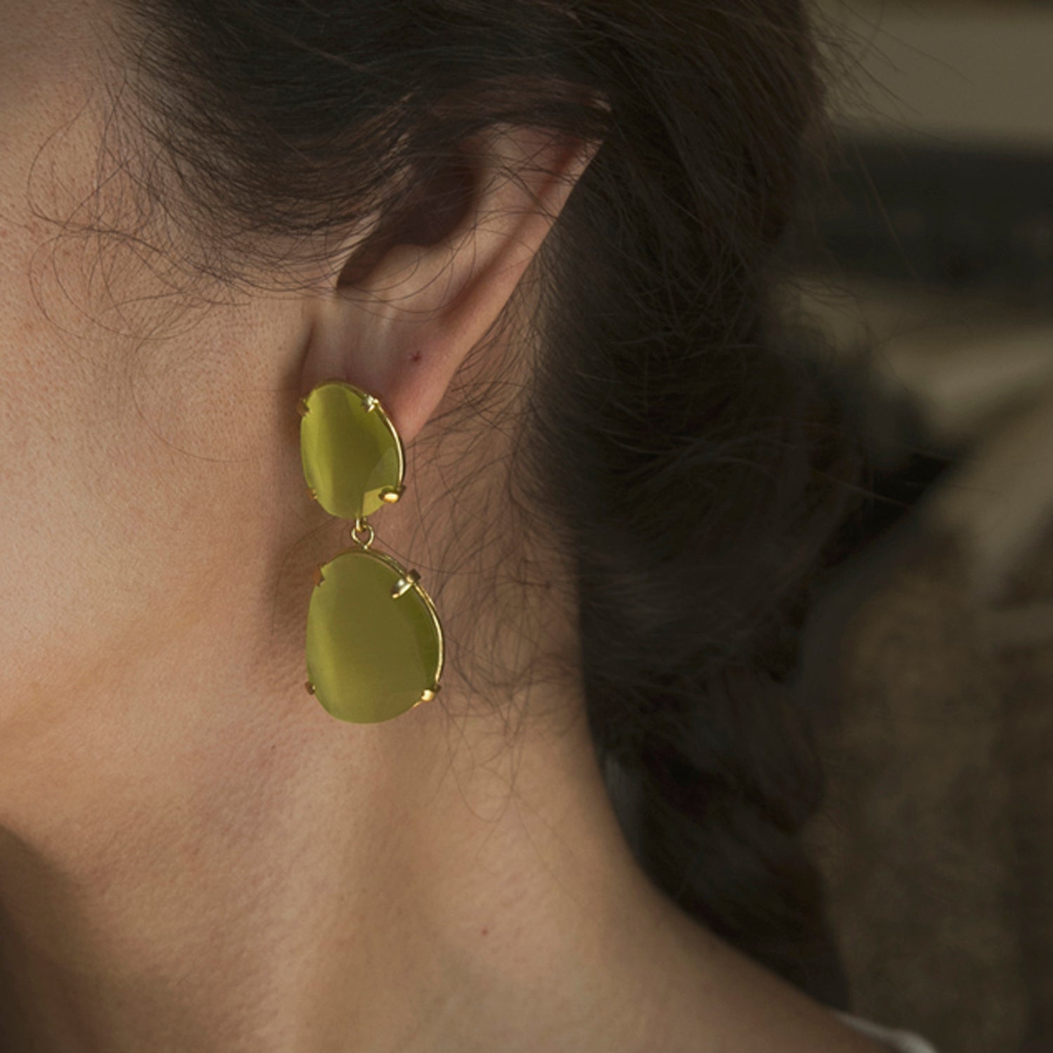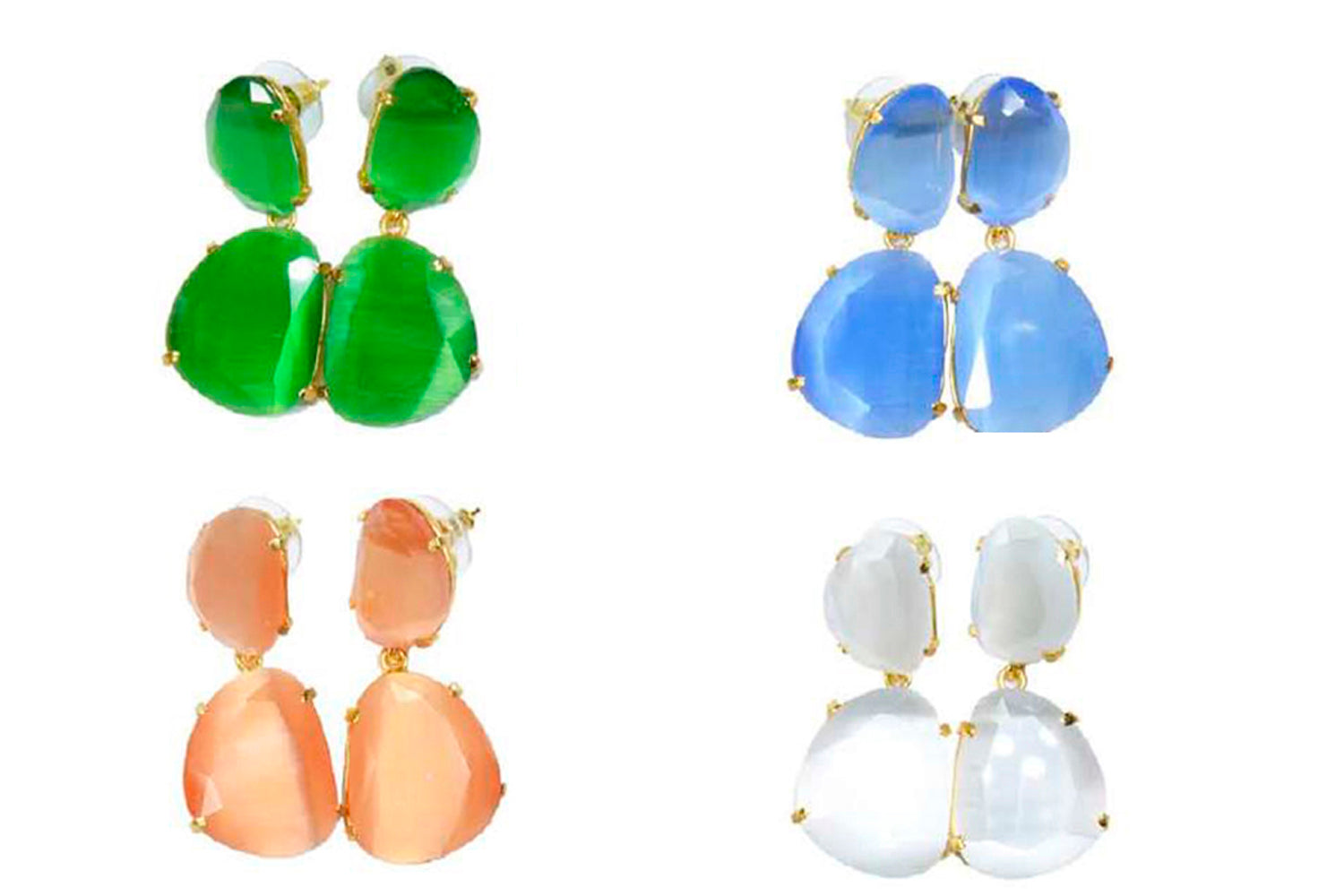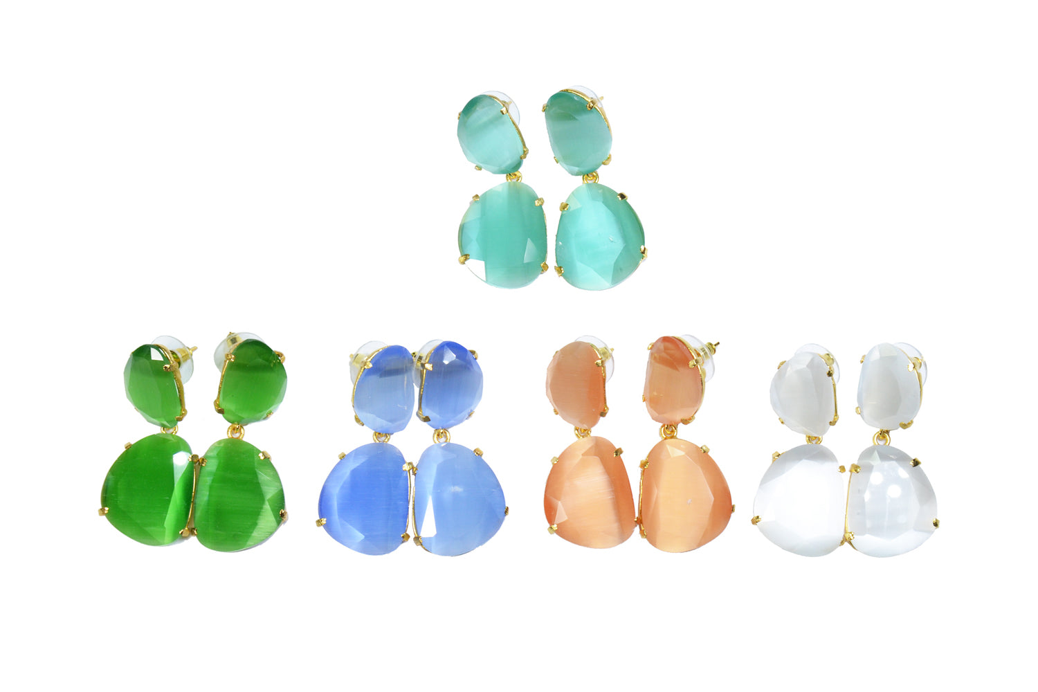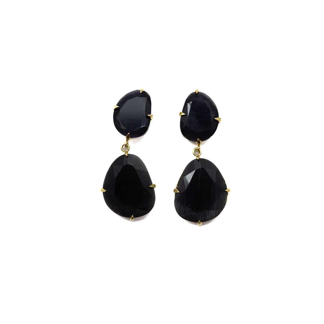Tamaño 4,8 pendiente doble con tilla, bañado en oro 18k, 3 micras cristal tratado sintéticamente para lograr los colores, el cristal va encajado a golpe de martillo de forma artesanal.