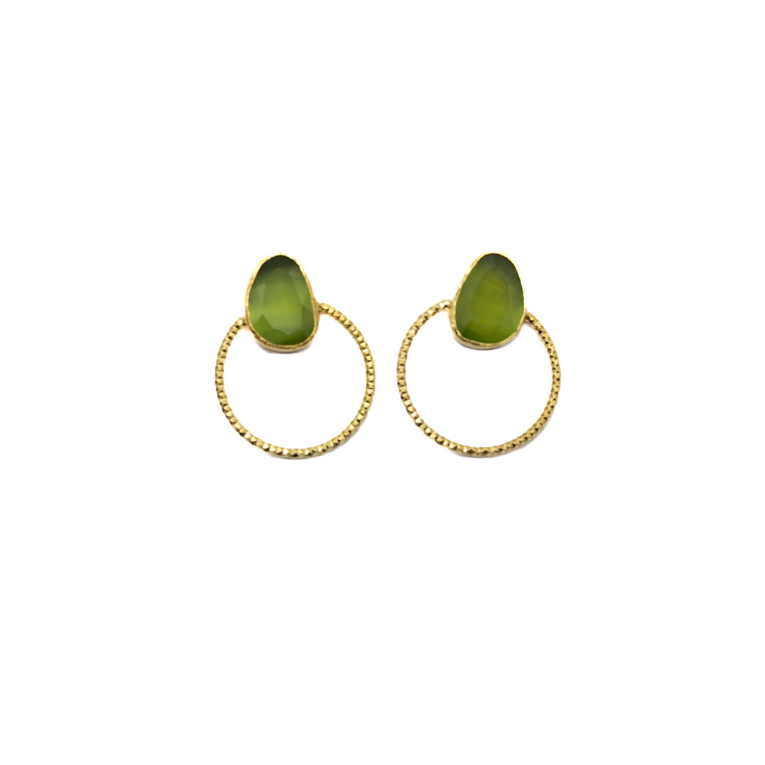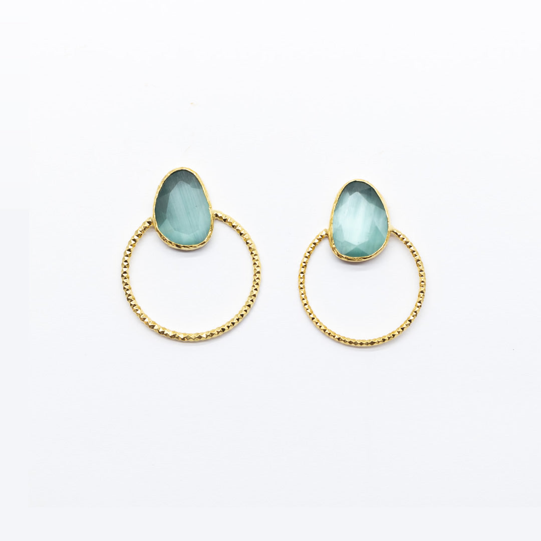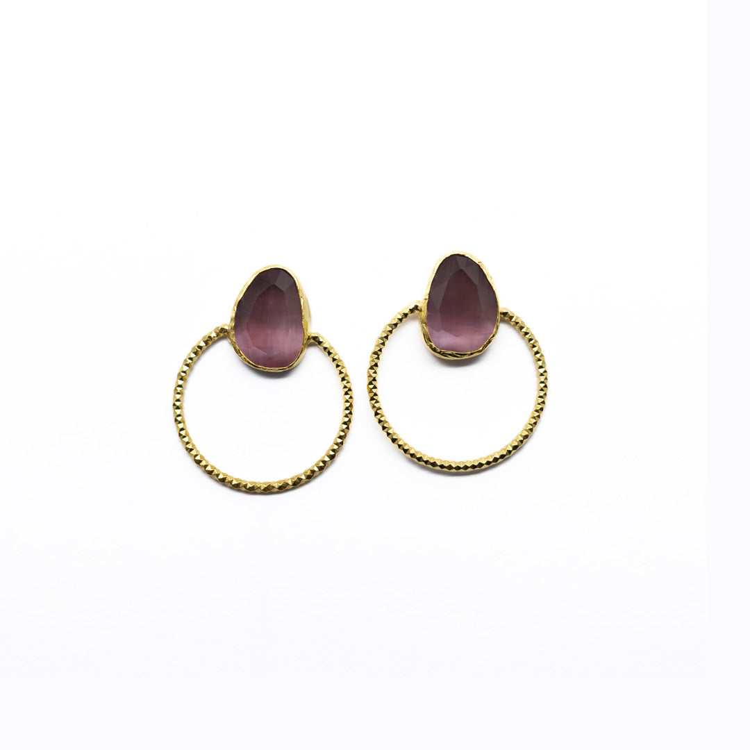 Modelo pendiente con cristal mediano, siempre en bronce bañado en oro 18k, 3 micras y cristal.